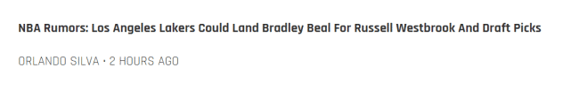名记晒威少3换1方案!引进比尔搭档詹眉 湖人牺牲两首轮再冲冠?