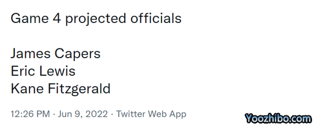 24直播网06月11日讯 ,总决赛G4的裁判名单已经提前曝光,执哨这场比赛的裁判将是19号裁判詹姆斯-卡珀斯,5号裁判卡恩-菲兹格拉德和42号裁判埃里克-刘易斯。