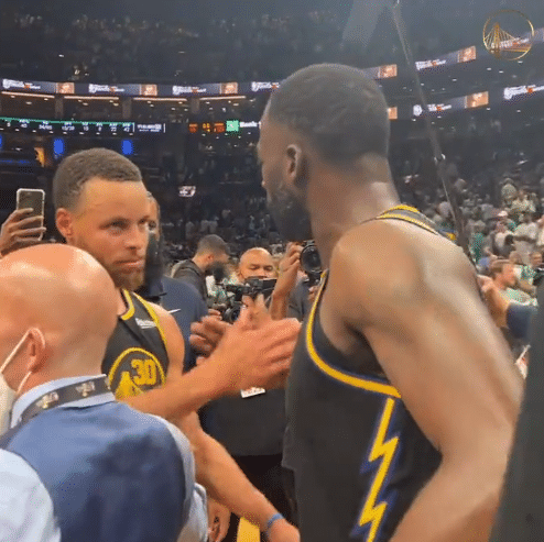 勇士球员通道庆祝曝光!赢球后库里拥抱格林满眼杀气