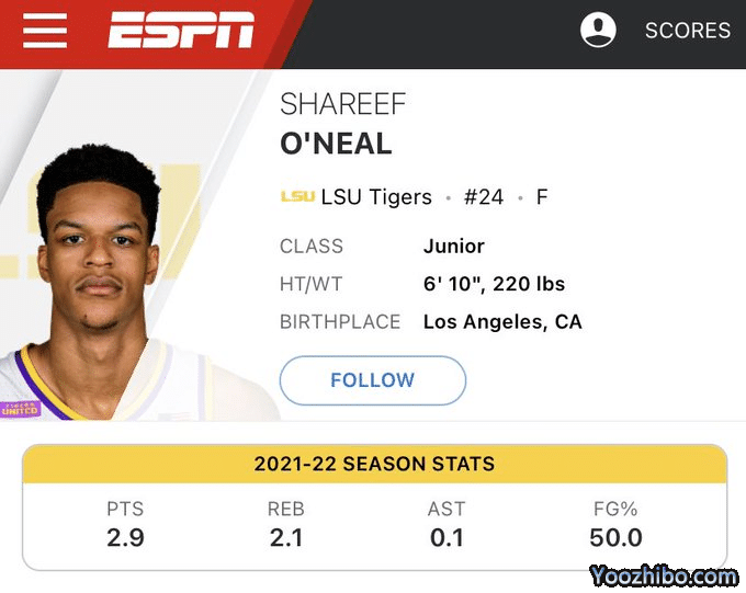 此前名记Shams报道,沙里夫-奥尼尔具备参加今年选秀大会的资格,他今年22岁,身高2米08,体重100公斤,在场上司职中锋。21-22赛季,大三的沙里夫为路易斯安那州立大学出战14场,场均上场9.3分钟,得到2.8分2.1篮板。