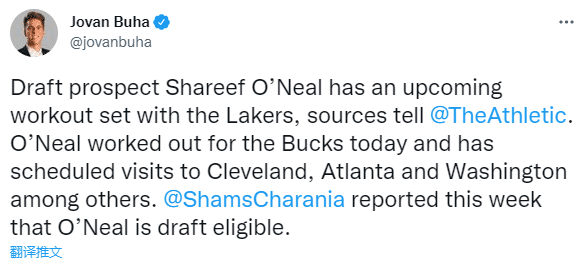24直播网06月10日讯 据洛杉矶记者Jovan Buha报道,消息人士透露,NBA名宿奥尼尔之子沙里夫-奥尼尔计划参加湖人试训,今日沙里夫将为雄鹿试训,并计划前往克利夫兰、亚特兰大和华盛顿等地参加试训。