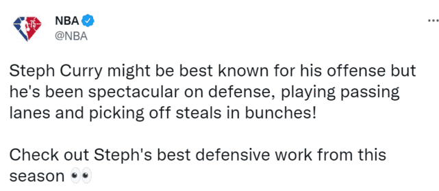 NBA官方社媒还转发了科尔对库里防守的评价。“(他的防守)被明显低估了,他比人们称赞的更加强壮,他真的很拼,严格执行比赛计划……”科尔认为库里的防守在过去3-4年明显进步了。“他现在能一场防50个挡拆,还能一场打50个挡拆。”