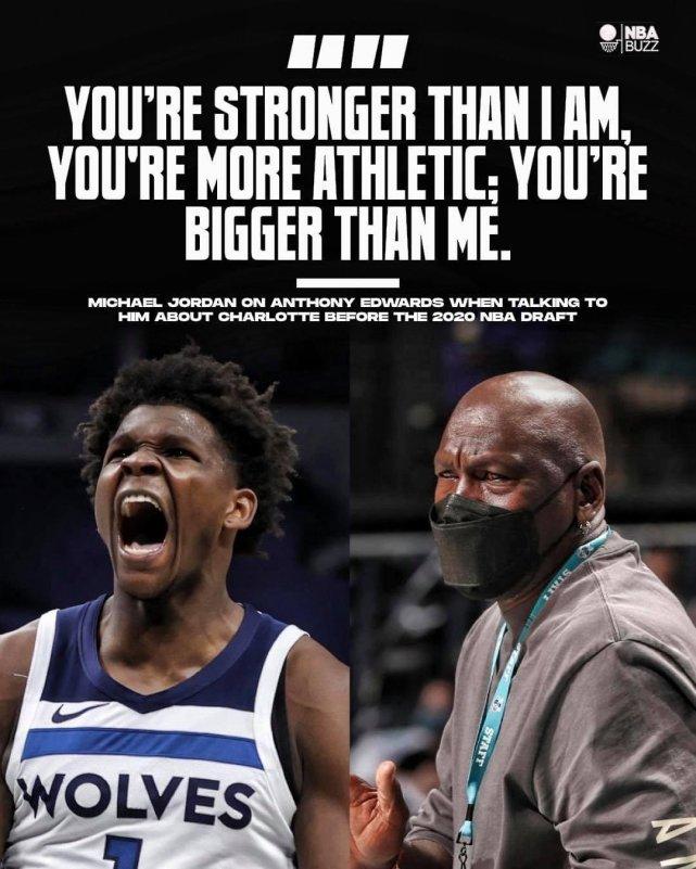 有趣的是乔丹本人曾经在2020年选秀大会前夸奖爱德华兹。当时他对爱德华兹说:“你比我更强壮,你比我更有运动天赋,你比我更高大。”