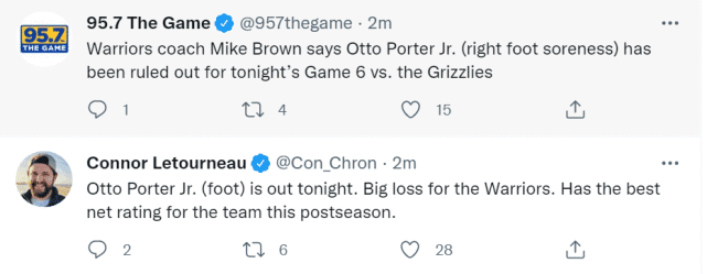 波特因伤缺席G6!净效率值+20.8全队第一,名记:勇士遭重大损失