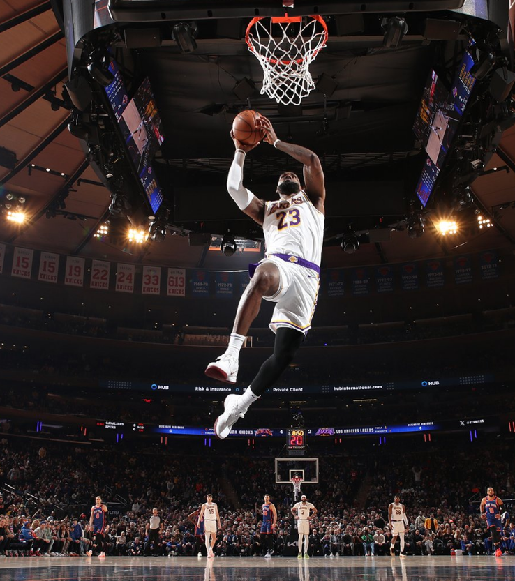 下半场,湖人第三节21-27被尼克斯反超比分,詹姆斯单节5中3又拿到6分,湖人落后6分进入末节决战;期间,浓眉连续大帽对手,里夫斯反击时无意撞倒詹姆斯。