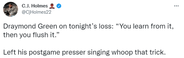 据记者CJ Holmes透露,在接受采访后,格林哼唱着“痛揍他们(Whoop that trick)”离开。