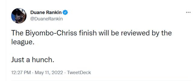当时两人的冲突,让蒙蒂都看懵了。领先这么多,至于吗?克里斯在被驱逐后,突然又出现在球场上。前方记者解释,那是因为克里斯刚刚去追比永博了,导致阿安保人员和独行侠的几位球员又把他给找回来。比赛结束后,斯特林-布朗和韦恩赖特两人也在场上发生了一些口角,这轮系列赛确实太火爆了!