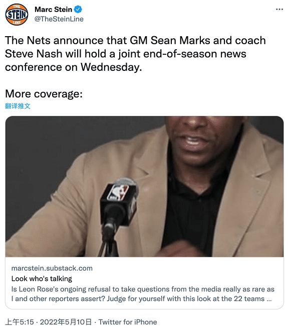 纳什已经基本上确定不会离开,所以展望下个赛季的发布会也会有他,虽然执教球队两年成绩不佳,第一年作为少帅的纳什率领三巨头止步季后赛第二轮,而本赛季更是一轮游被横扫出局。篮网投入巨大,引进的巨星也不少,目标就是为了冲击总冠军,也是队史首冠,但可惜纳什没有达到目标,而俱乐部的管理层依旧选择继续相信纳什,他没有下课风险。