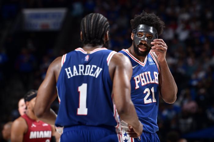 哈登也盛赞恩比德,表示:他只要在场上就给了我们能量,他的统治力。