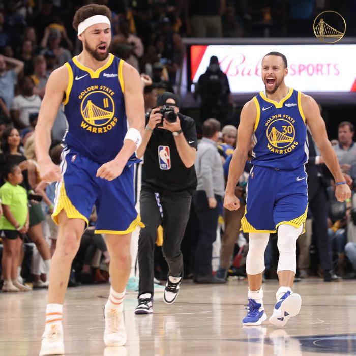 勇士赢球后,上半场被驱逐的格林站在球员通道入口处,戴着眼镜拥抱勇士众球员和教练组成员,此时格林疯狂宣泄内心的情绪;格林拥抱库里时,高呼:你告诉我的,你TM告诉我的;在格林被驱逐时,库里告诉格林他一定会带队拿下胜利。