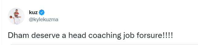 2013-18赛季,汉姆成为老鹰队的助教,2018年至今,他成为布登霍尔泽教练团队的一员,为雄鹿工作。作为球员,汉姆在2004年跟随活塞拿到总冠军,而作为教练,他在2021年跟随雄鹿夺冠。这些年,汉姆一直被认为是最有前途的助教之一。库兹马发推力挺汉姆:他值得拥有一份主教练工作!
