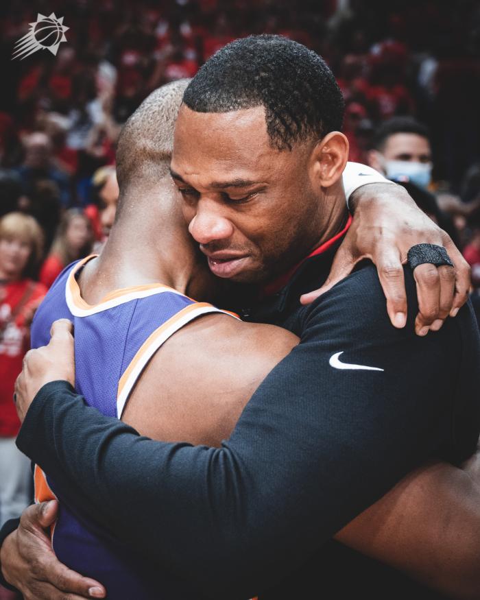 来源:24直播网04-29 16:3524直播网04月29日讯 ,鹈鹕G6主场惜败,系列赛大比分2-4被太阳淘汰出局,鹈鹕出局后,威利-格林情绪激动,拥抱保罗时泪流满面,鹈鹕主帅哭泣的画面太感人;赛后太阳官方晒出这一幕,发推写道:我们都爱你,威利,伟大的系列赛。