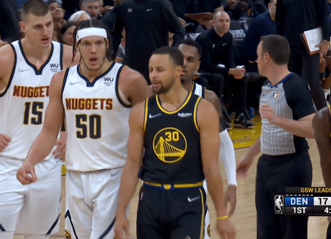 最终戈登因扣篮吃到一次技术犯规;库里执行技犯罚球却打铁不中。