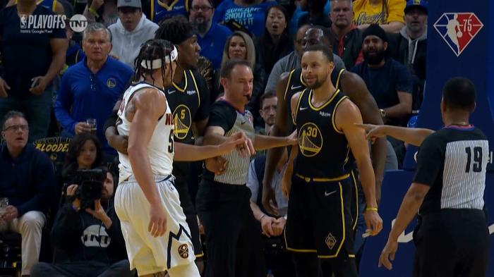 冲突!戈登扣篮吃T惹怒格林,追梦抱腿险摔倒后者+库里上前汤神抢镜