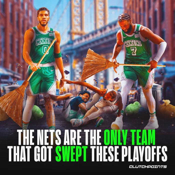 篮网被横扫出局瞬间冲上热搜引热议,篮网成为NBA史上第一支投篮命中率50%且三分命中率40%却被淘汰的球队,该纪录历史首队。
