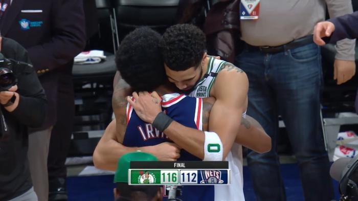 赛后杜兰特和欧文都拥抱凯尔特人球星塔图姆,今日一战,塔图姆轰下29分5助攻3篮板,拼到六犯毕业;欧文全场20分5篮板5助攻2盖帽。