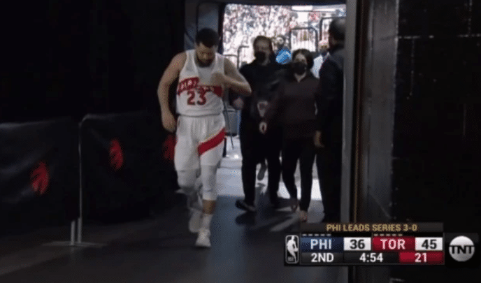 范乔丹伤退怒撕球衣!臀部受伤太沮丧,猛龙赢球后他拥抱队友大笑庆祝