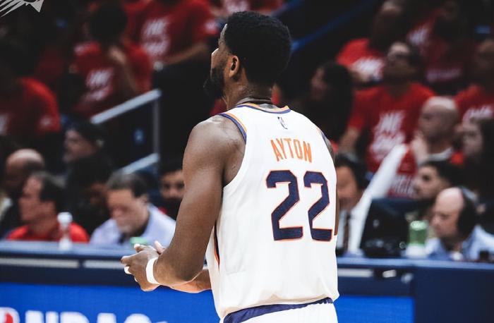 第二节,双方开局的争夺依然激烈,比分交替上升来到43平。此时,场上出现意外,海斯故意撞倒克劳德直接遭到驱逐。太阳方面此后打出16-5,单节轰出31-19的比分。半场结束,太阳59-48反超了11分。上半场,艾顿21分,而英格拉姆和麦科勒姆合砍25分。