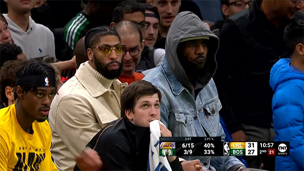 上半场最后时刻,范德比尔特抢断塔图姆后遭遇伤病,无接触且无碰撞受伤,表情痛苦,直接下场坐回替补席,湖人队医为他紧急检查后,范德比尔特一瘸一拐,直接返回更衣室。