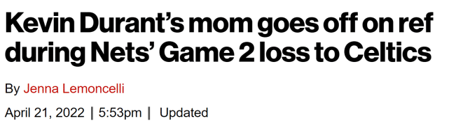 杜兰特妈妈怒喷裁判一幕曝光!KD没急她先急?篮网老板一脸平静