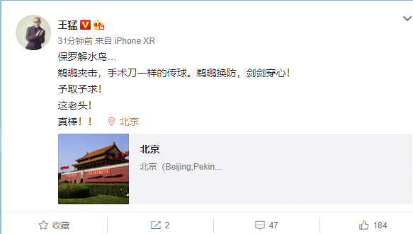 王猛盛赞保罗:保罗解水鸟…鹈鹕夹击,手术刀一样的传球。鹈鹕换防,剑剑穿心!予取予求!这老头!真棒!