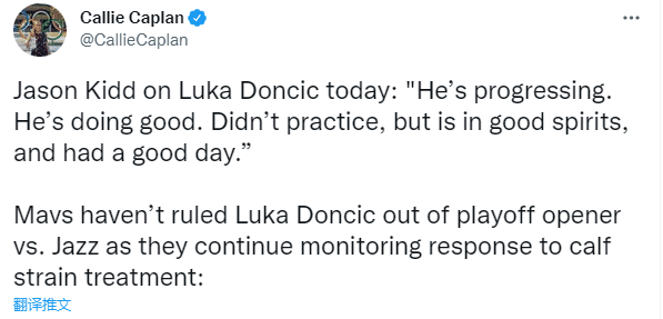独行侠还没有把完全把东契奇排除在首轮G1之外,他们将会继续对他的小腿进行治疗。