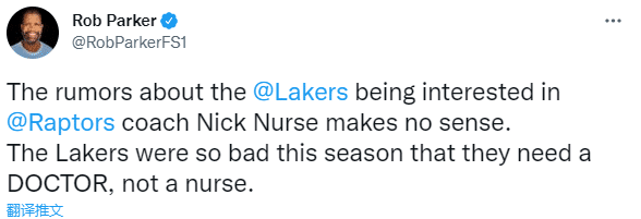 来源:24直播网04-12 15:1824直播网04月12日讯 ,纳斯和里弗斯也是湖人潜在新帅候选人,对于湖人选帅,NBA记者Rob Parker发推写道:传言湖人有意让纳斯当新帅毫无意义,湖人打出糟糕的赛季,他们需要一个医生,而不是一名护士。