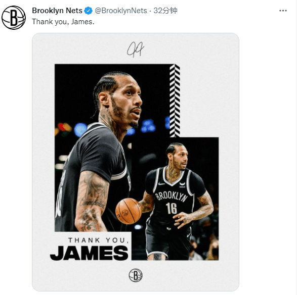 篮网官方已经宣布裁掉詹姆斯-约翰逊,晒照并且配文写道:谢谢你,詹姆斯(约翰逊)。