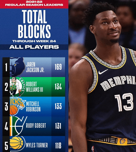 盖帽王很有可能属于场均2.3次的贾伦-杰克逊,这位灰熊悍将本赛季取得了巨大的成功,球队排名西部第二名,战绩也已经确定是联盟第二好,仅次于太阳,如果可以加冕盖帽王的话,对于贾伦-杰克逊可以说是双喜临门。