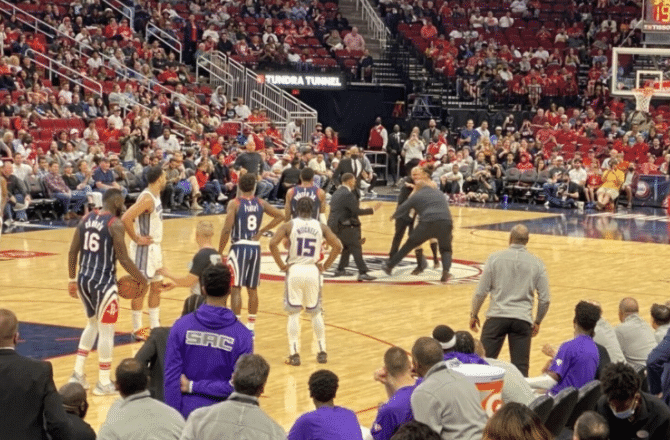 球迷冲进场内,NBA史上头1次,多名保安介入转播镜头迅速切走