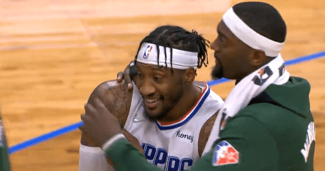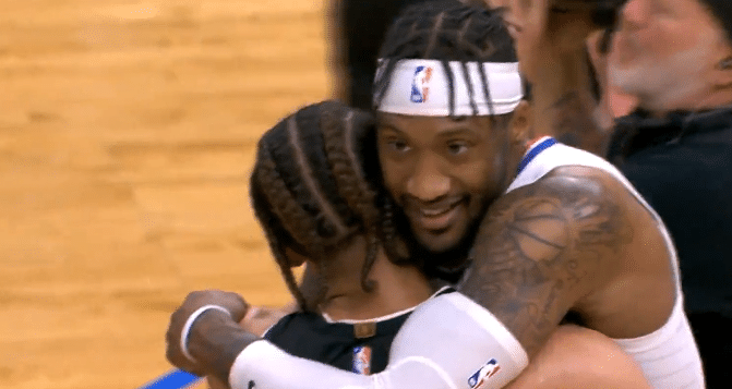 快船赢球乐开怀,考文顿咧嘴大笑十分开心,波蒂斯等球员过来拥抱并且祝贺考文顿;赛后谈到这场比赛,考文顿表示:我的队友想让我拿50分,但我们对手不想让我拿50分。