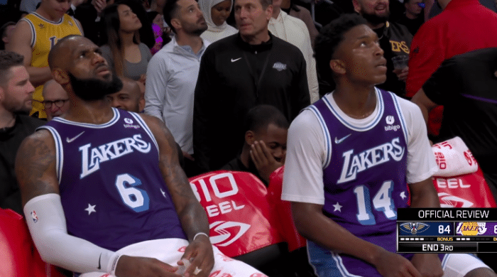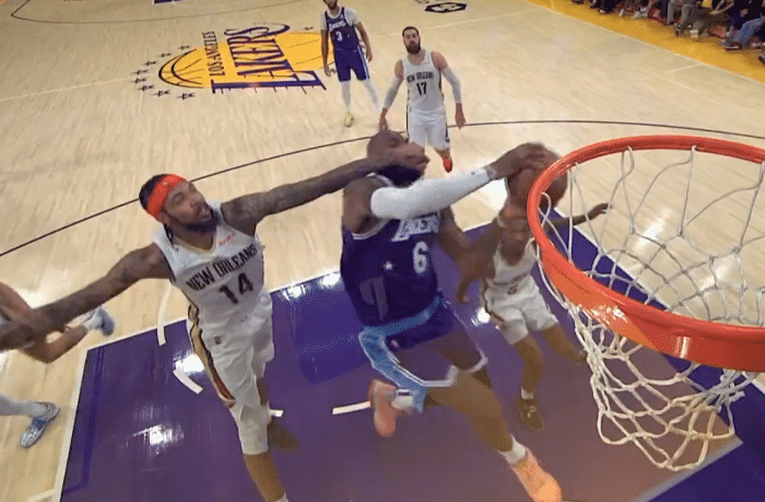 末节,詹姆斯休息时,威少连续命中两记三分球,湖人稍微扩大领先优势;第四节7分48秒,詹姆斯重新上场,再次突破得分,随后詹姆斯组织进攻,浓眉禁区得分,可之后两罚不中;威少关键上篮,可防守放空瓦兰,后者投进三分追平比分。