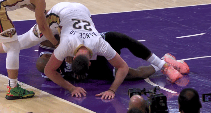 湖人主场对阵鹈鹕,詹姆斯和浓眉同一天复出,詹姆斯90度崴脚后仅歇4天便火线复出,全场出战39分钟23投13中狂砍38分8篮板1抢断4助攻6失误,继续领跑得分榜;詹姆斯两次惨遭恶意犯规以及摔出场外救球,第三节独砍21分杀红眼,错失绝平三分,拼尽全力仍输球。