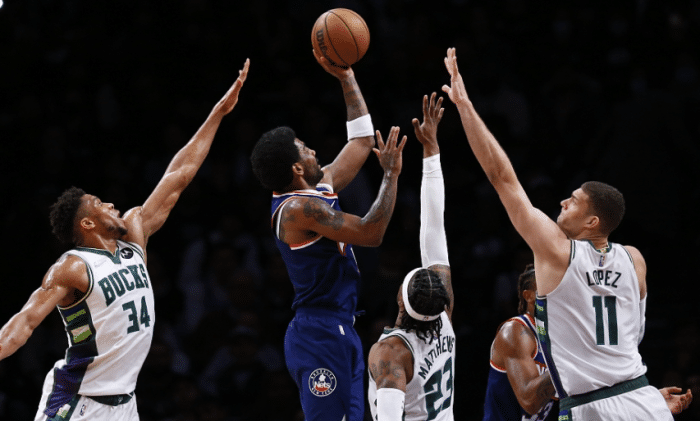 欧文第二节贡献11分,不过篮网没人能挡住字母哥,雄鹿单节31-26扭转局面。