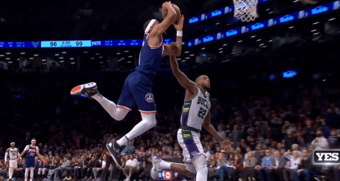 末节篮网和雄鹿僵持不下,杜兰特仅歇3分钟便重新上场,带队打出7-0小高潮从而反超比分;末节关键时刻,小布朗反击上篮被米德尔顿拉拽,直接从空中重摔倒地,米德尔顿吃到二级恶意犯规被驱逐离场;随后死神挥舞镰刀,外线三分一击即中,接欧文助攻完成空接暴扣。