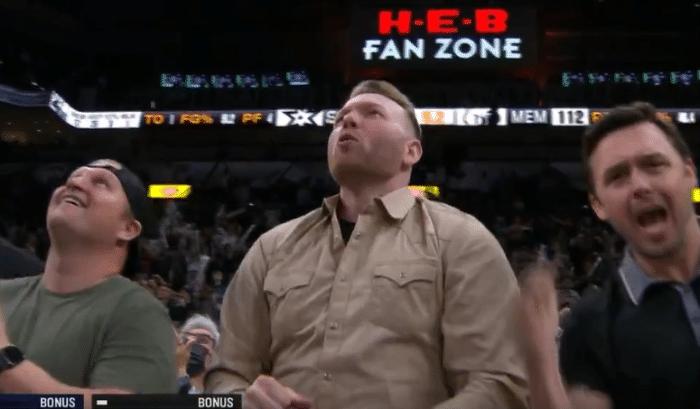 但就是这个把握性很大的上篮,篮球鬼使神差涮了一圈,滚出了篮筐。马刺就此以1分惜败给灰熊,连胜遭到终结。马刺球员和球迷也是非常沮丧,他们纷纷抱头,显得极为失落。凯尔登约翰逊同样抱头沮丧,随后用衣服蒙住头。