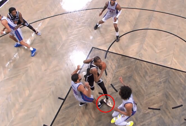 慢镜头显示,杜兰特突破时,约瑟夫和巴格利同时撤回内线防守,而杜兰特的左脚正好踩到约瑟夫的前脚掌, 他也因此失去平衡,出手不中。裁判没有响哨,斯图尔特抢下篮板。6秒钟后,德拉蒙德犯规,杜兰特检查了自己的脚踝,决定继续留在场上比赛。他也没有被换下场。