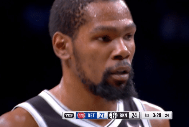 篮网首节7失误落后!杜兰特13+5+3!活塞三分10中6