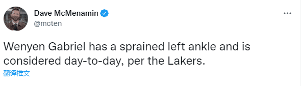 湖人输球又添伤员,加布里埃尔左脚踝扭伤,一瘸一拐离场,进入每日观察名单,今天替补上场15分钟,3投2中拿到8分7篮板。