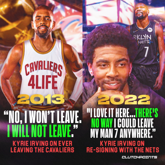 美媒clutchpoints晒图提问:“欧文这次会信守诺言吗?”欧文在2013年谈到是否会离开骑士时,他说:“不,我不会离开,我不会离开!”他在绿军也承诺过续约,现在,轮到篮网了?