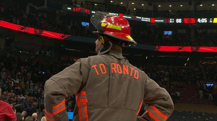 24直播网03月27日讯 ,NBA常规赛猛龙主场对阵步行者,比赛期间,猛龙主场失火导致比赛暂停,球员们相互拥抱后直接返回了更衣室,消防员现场疏散球迷。