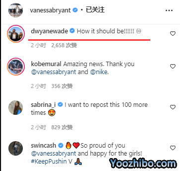 韦德在瓦妮莎动态评论区留言:应得的!!!