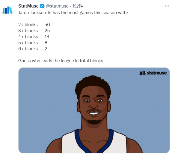 贝恩全场仅打23分钟,15投12中、三分7中5拿到30分5篮板5助攻,效率奇高,在场正负值高达+40;杰克逊16分钟13投7中拿到20分2盖帽,本赛季50次单场至少2帽联盟第一,25次至少3帽、14次至少4帽、8次至少5帽和2次至少6帽都是联盟第一,场均2.3次盖帽联盟第一。