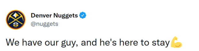 掘金目前战绩是43胜30负,排名西部第六,而这是在约基奇、穆雷和小波特没有合体打过一场比赛的前提下实现的。ESPN数据显示,丹佛掘金在NBA的投篮命中率排名第三,有效命中率排名第二,助攻率排名第二。