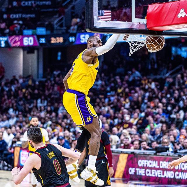 湖人球星勒布朗-詹姆斯更新社媒,晒出了昨天湖人客场对骑士一战的多张图片。图片中的詹姆斯完成漂亮的劈扣,而他的球鞋后跟写着“来自阿克伦的孩子”。