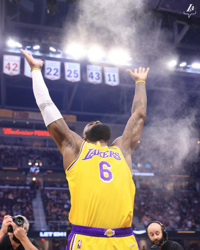末节,詹姆斯带队打出12-2反击波,得分和助攻同时抓,早早拿到三双,湖人官方祝贺并且盛赞詹姆斯做到了一切;关键时刻,詹姆斯强硬上篮,杀到内线暴扣以及高难度后仰跳投,连续3球打得骑士放弃比赛。