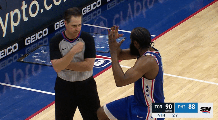 不愿碰篮网?哈登太拉胯,恶意犯规+上篮罚球全丢,赛后转身离开