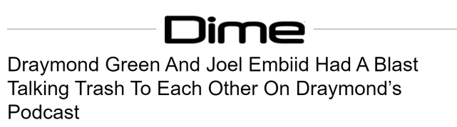 恩比德也受邀参加了追梦格林的播客节目,并在节目上和追梦就各种话题展开讨论,特别是防守问题上,两人搞笑互喷垃圾话。