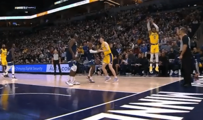 但没有办法,威少这球投得太过糟糕。里夫斯为他挡开防守球员后,威少身前根本没人。而且,威少在底角的命中率相对不错。但最终,威少投出了一个尴尬的三不沾。这样的表现,对手嘲讽你,你也得受着。