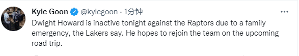 昨天湖人客场惨败太阳,詹姆斯出战30分钟拿到31分7篮板6助攻;今日詹姆斯继续带队出战,霍华德因家庭紧急情况暂时离队,老魔兽希望在接下来的四连客场之旅中归队。